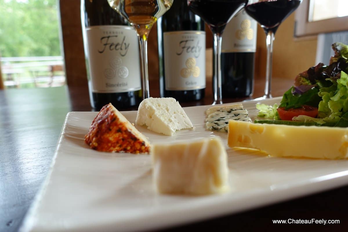 Step 1: Try the goats cheese with the two wines then the creamy camembert with both wines. The Sauvignon Semillon no barrel will be far superior with the goat cheese and the barrel aged with the creamy camembert.