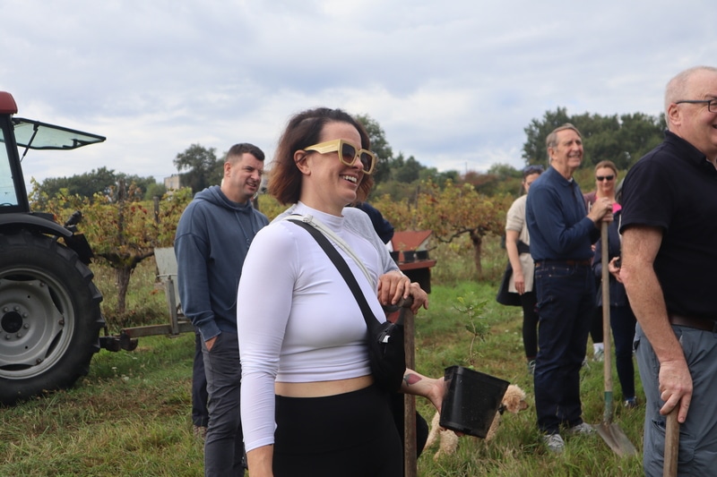 Harvest day for Chateau Feely wine club Members and vineyard shareholders turned into a fabulous tree planting day followed by great fun with the harvest celebration at Melange in Saussignac.