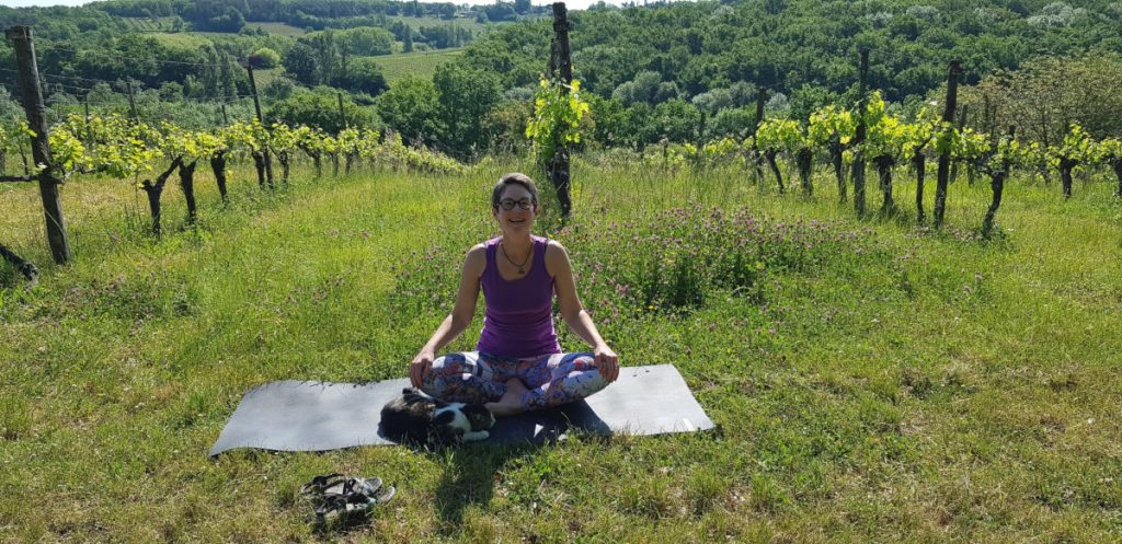 In-person classes and retreats on our organic vineyard in Saussignac, Dordogne — and online from anywhere in the world. Taught by Caro Feely, RYT500 certified yoga teacher.